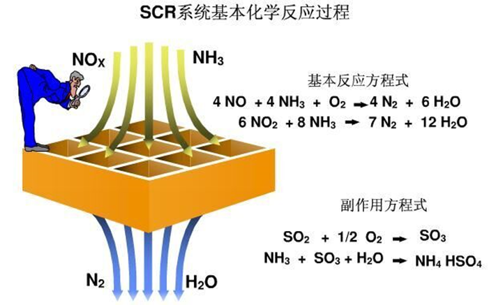 选择性催化还原法(SCR技术)是以氨(NH3)作为还原剂,在催化剂作用下,将NOx的还原成无害的N2和H2O。 NH3有选择的与烟气中NOx反应,而自身不被烟气中的残余的O2氧化,因此称这种方法为“选择性”。